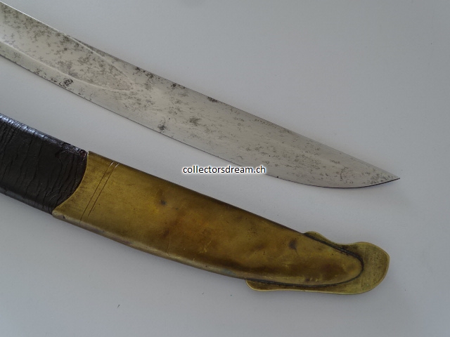 Gesamtlänge ca. 77,5cm. Lederscheide mit langem Messingstiefel. Altersübliche