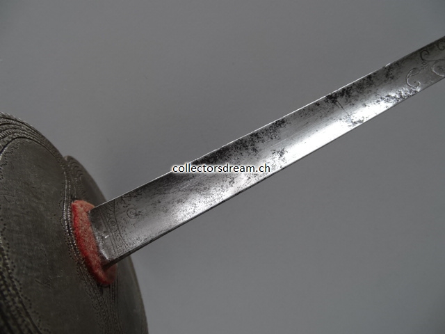 Galadegen sog. "Silberdegen" Frankreich um 1780/1800 mit Dreikantklinge mit Dekor. Es ist keine Lederscheide vorhanden. Gesamtlänge 97cm. Altersübliche Gebrauchsspuren, Klinge fleckig.